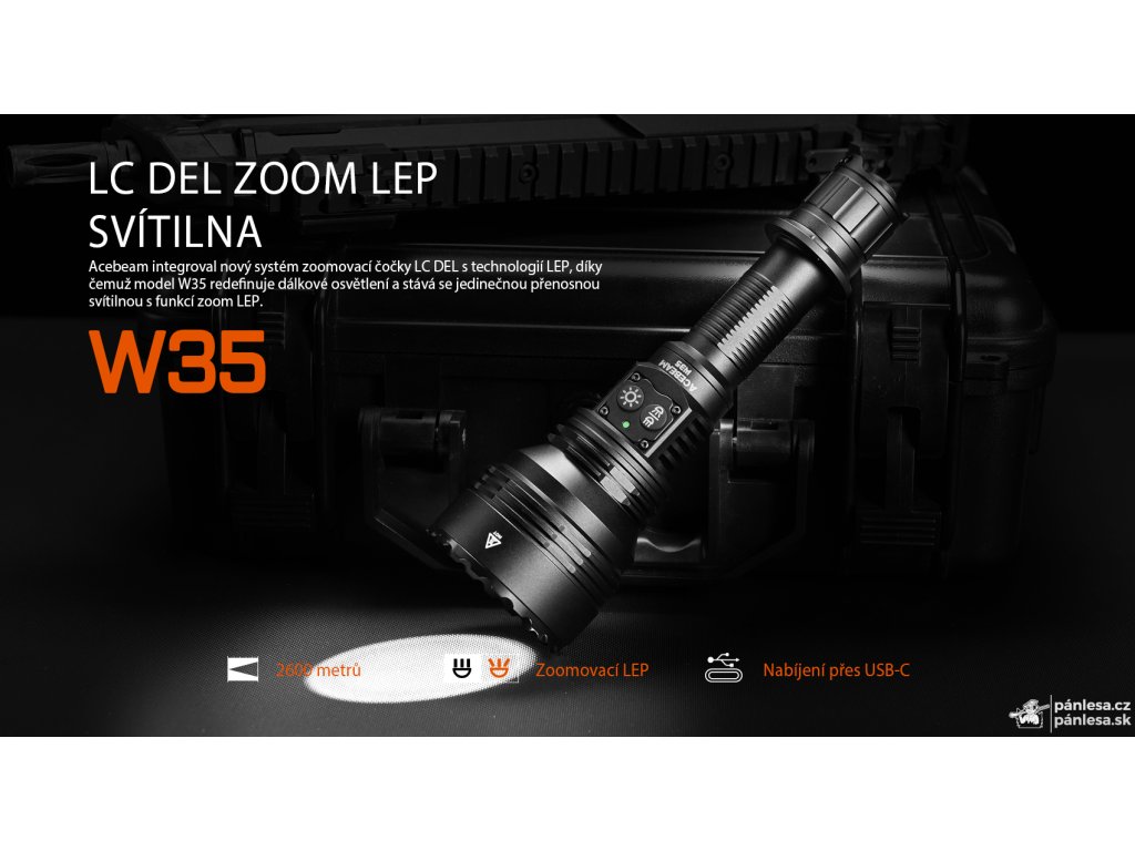 AceBeam W35, 800 lm - Lovecká LEP svítilna se zoomem, černá
