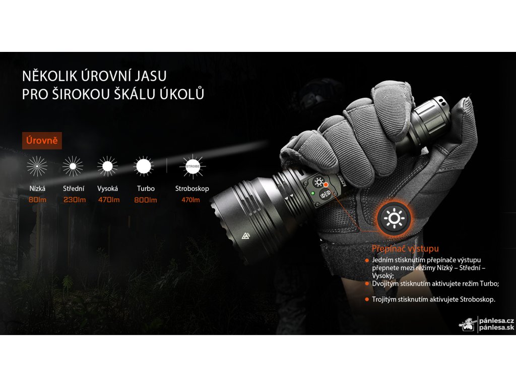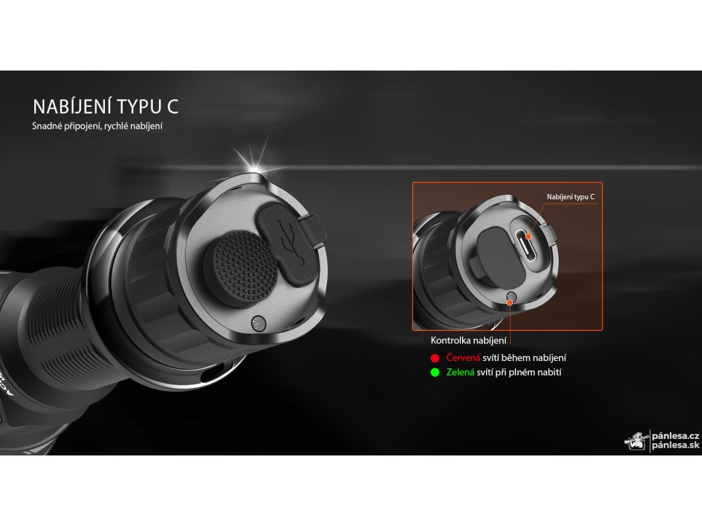 W35 dále nabízí úderný kroužek z nerezové oceli, pět režimů osvětlení a zabudovaný USB-C konektor pro nabíjení.