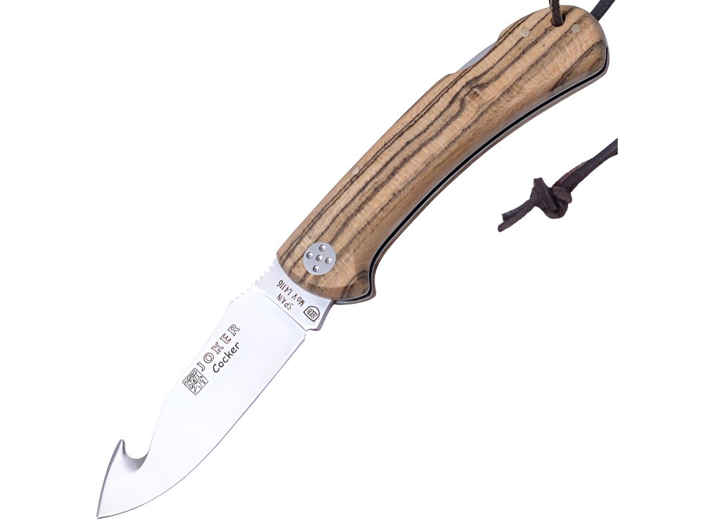 Španělský výrobce Joker je tradiční výrobce z tradiční líhně nožů - města Albacete. Nůž Cocker je ze série zavíracích nožů, které jsou skvělé na každodenní nošení, především díky velmi nízké hmotnosti a dostatečně dlouhému ostří. Nůž mimo klasické ostří disponujeme párákem, který Vám usnadní práci při vyvrhování zvěře. Dále nůž nabízí pojistku proti nechtěnému zavření s vnějším odjištěním, koženou šňůru a střenky ze vzácného dřeva bocote, vyskytující se ve střední Americe a subtropech Asie.